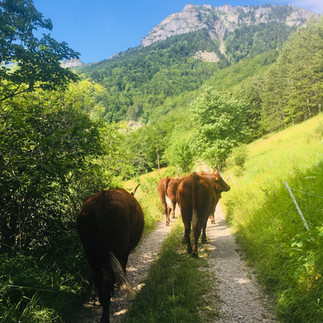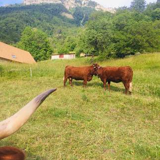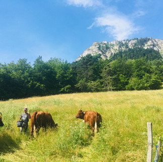 Je rallonge un peu ce post pour y faire figurer la mini transhumance de nos salers vers un nouveau spot d'herbe avec laquelle se régaler.